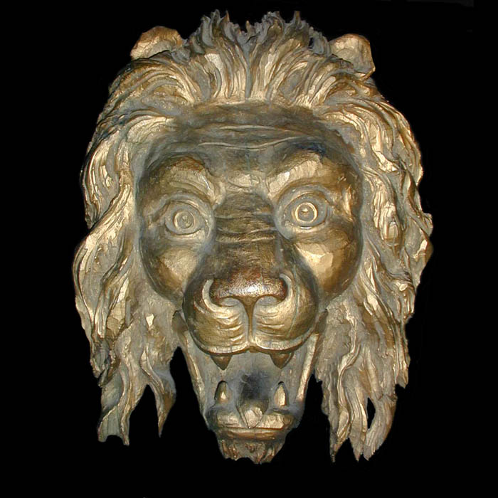 Lion and tiger head plaques in their architectural and decorative arts forms are often referred to as masks, though they are not hollow or worn as part of a costume. Animal form masks had a wide variety of uses in classical design from building exterior and interiors, to furniture, ceramics, etc. Folk art examples were frequently used as carved decoration for the ends of catheads on the bows of ships or for a circus or as a carnival decoration (for example, on a carousel).