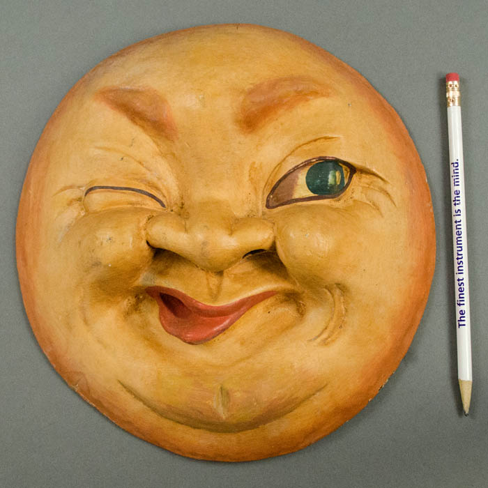 A face of a winking man in the moon has been a popular image in art and decorative arts since at least the mid 19th century, particularly in the Victorian and Art Nouveau periods as a symbol of nighttime. The Man in the Moon frequently has appeared in advertisements, including soups, tooth polish, fruit, etc. Extant plaques as promotions for cigar manufacturers resembling the offered plaque are known though they generally depict the moon smoking a cigar.