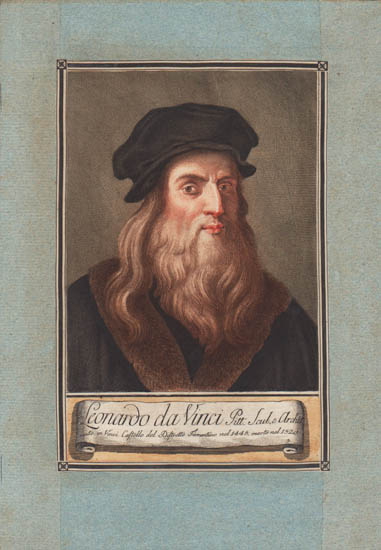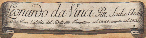 “Leonardo da Vinci Pitt. Scul. e Archit. nato in Vinci Castello del Distretto Fiorentino nel 1445, morto nel 1520. 3.” [Leonardo da Vinci, Painter, Sculptor and Architect born in Vinci Castle of the Florentine District in 1445, died in 1520.]