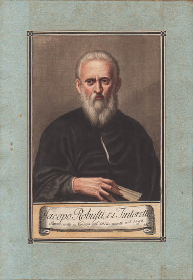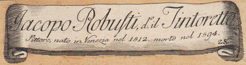 “Jacopo Robusti, d[ett]o il Tintoretto. Pittore, nato in Venezia nel 1512, morto nel 1594. 28.” [Jacopo Robusti, called Tintoretto. Painter, born in Venice in 1512, died in 1594.]