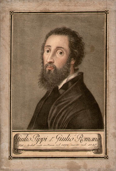 “Giulio Pippi d[ett]o Giulio Romano. Pitt. e Archit. nato in Roma nel 1492, morto nel 1546. 19.” [Giulio Pippi called Giulio Romano, Painter and Architect born in Rome in 1492, died in 1546.]