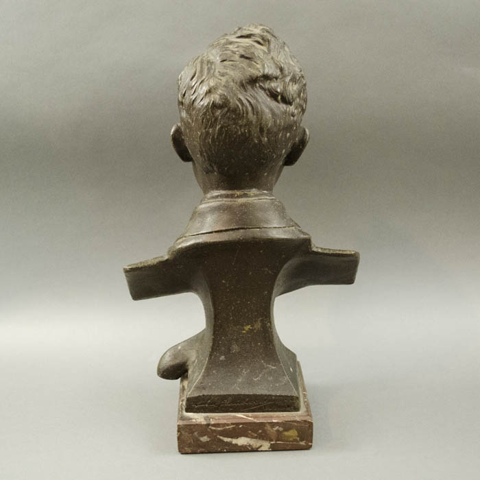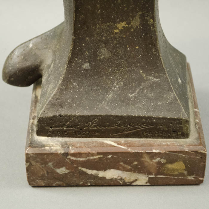 Otakar Steinberger was a Czechoslovakian-born sculptor active in England in the 1920s and ’30s, known for portrait and figure sculpture in bronze. He seems to have had a particular interest in producing portrait busts and figures of pioneering aviators, most notably a bust of the American Charles Lindbergh. He also sculpted both a bust and a figurine of Amy Johnson (1903-1941), a pioneering English female pilot who was the first woman to fly solo from London to Australia as well as a bust of Bert Hinkler, an Australian pilot and national hero. Steinberger asked the Royal Aero Club of the United Kingdom to present this bust to Mr. Hinkler.