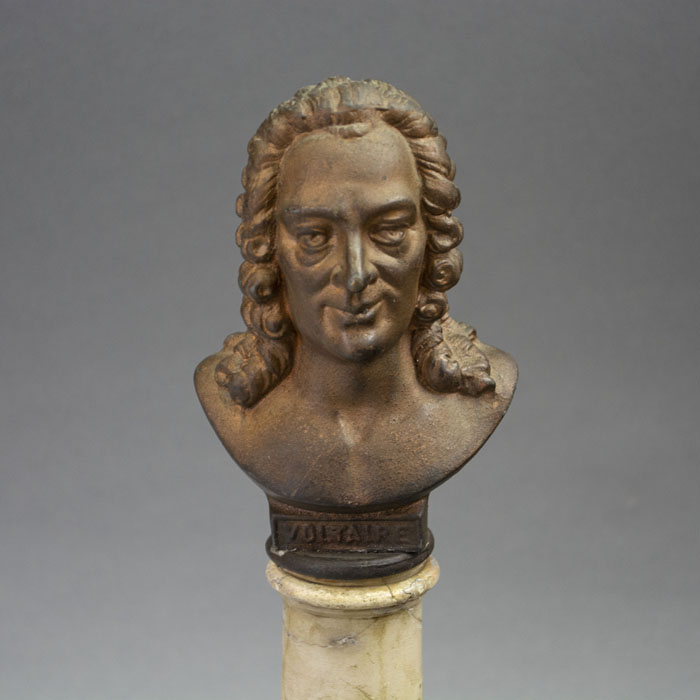 Portrait, Literature, Voltaire, French Enlightenment Philosopher, Metal and Marble, Antique, 1900