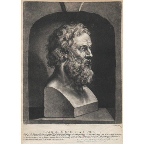 Plato: “Ex Marmore Antiquo. P.P. Rubens Delin’t. J. Faber fecit. d. Chief of the Aademicks he compriz’d all his Doctrine into Dialogues & from the excellency of it was call’d Divine Plato. In his Doctrine he propos’d 3 of the finest Wills of Greece, in Natural Philosophy he follow’d Heraclitus; in Logick Pithagoras; & in his Moral Philosophy he confin’d himself to his Master Socrates. When an Infant & asleep in his Cradle a swarm of Bees came & setted on his Lips as an Omen of his future Eloquence. Printed for and Sold by Tho. Bowles next the St. Pauls Church Yard and John Bowles at the Black Horse on Cornhill London.”