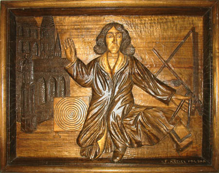 Portrait, Science, Astronomy, Copernicus, Carved Wood Plaque, mid 20th Century