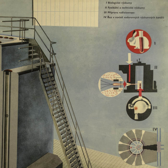 Full publication information, lower margin: Atomový Reaktor. Namaloval Jiří Havlín pod obdborným vedenim inž. Jana Tůmy. Vydalo Státni pedagogicke nakladatelstvi, n. p. Praha – 1959.