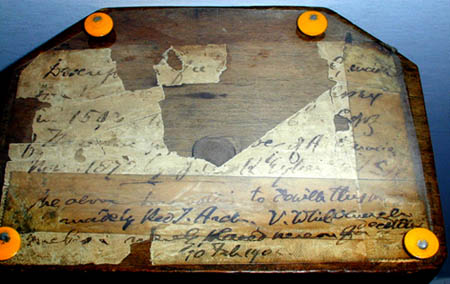 Condition: Generally very good with the usual overall handling and wear. Some light bending and oxidation to gnomons. Remnants of old identification label on bottom.