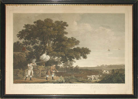 An inscription beneath each title states that they were engraved after original paintings in the collection of the publisher, Thomas Bradford, and gives the date of issue — they were each issued separately between 1769 and 1771. The author of the verses is unknown; that the hunters are portrayed as ordinary townsfolk and not privileged landowners makes both the paintings and the poem unusual for that era (Egerton). The first scene was painted by Stubbs and purchased by Bradford after being exhibited at the Society of Artists in 1767. Bradford then commissioned the next three paintings in order to have images to publish a set of four prints to be sold by subscription (Lennox-Boyd). The original paintings were all exhibited at the Society of Artists over the next few years; today they are in the collection of the Yale Center for British Art, a gift of Paul Mellon. The engravings are not identical to the paintings, possibly because some details were difficult to translate into engraving (Lennox-Boyd). Bradford died or retired around 1774, and the copperplates were sold. The images remained popular and firms such as Sayer & Bennett, Laurie & Whittle, Thomas Gosden, Boydell and Boydell’s successors continued to reprint and sell the engravings well into the 19th century.
