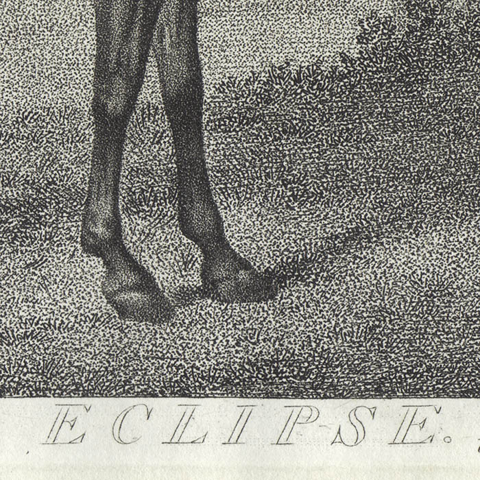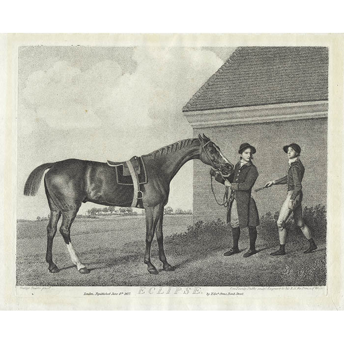 Inscription below Eclipse: “Eclipse. George Stubbs pinx’t. Geo. Townly Stubbs sculp’t. Engraver to his R.H. the Prince of Wales. London, Republished June 4th 1817, by Edw’d Orme, Bond Street.”