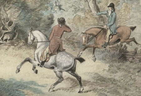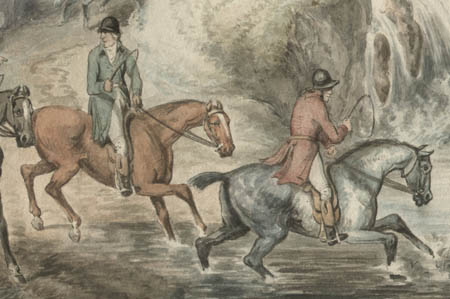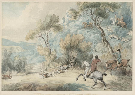 Samuel Howitt was an accomplished British sporting and animal painter, whose works included horse prints, hunting scenes, and landscapes. Raised a country gentleman, he was apparently self-taught and turned to art as a means of increasing his income, specializing in vibrant light-filled paintings of the sporting and animal subjects he knew so well. He first exhibited at the Spring Garden Rooms in 1783 and at the Royal Academy in 1793. He frequently sketched at the Menagerie in the Tower of London. Howitt’s style is occasionally mistaken for that of his brother-in-law Thomas Rowlandson. Howitt’s notable collections include The British Sportsman (1812), a collection of 71 full-page engraved plates covering field sports and sporting dogs and Oriental Fieldsports (1807), 40 color aquatint prints of wild life, flora, and big game hunting scenes of British and native peoples in India during the Regency period. He also produced 100 plates for Foreign Field Sports (1814) and illustrated an 1814 edition of Aesop’s Fables.