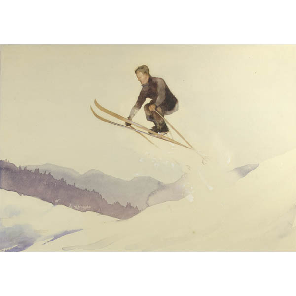 Inscriptions: The painting is titled in pencil in the far lower left margin beyond ruled border “Ski-Jumper,” possibly in artist’s hand. It is also numbered lower right “M.204.60.”