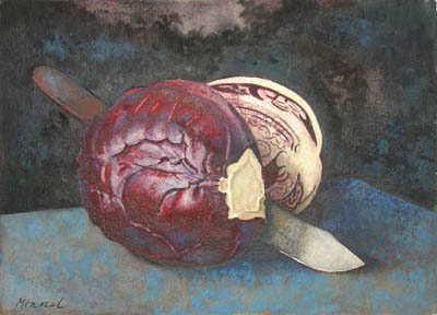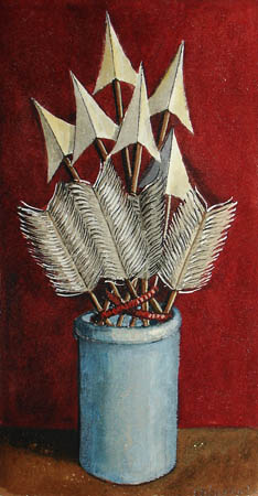 De Menocal graduated from the school of the Boston Museum of Fine Arts. During his early career he drew illustrations for Condé Nast publications, organized displays for the Lord and Taylor department store in New York City, and created costume designs for Radio City Music Hall. He had his first solo exhibition in 1951, and continued to show in this country even after moving to Brazil. In the 1960s de Menocal withdrew from the secular world and spent over a decade at the Holy Apostles Seminary in Cromwell, Connecticut, and later with the Trappists in Derryville, Virginia, and Spencer, Massachusetts. After leaving the monastery he settled in Cambridge, Massachusetts, and returned to painting. In the still life arrangements for which he is best known, de Menocal is concerned with quietude of mood and with formal issues of balance and tone.