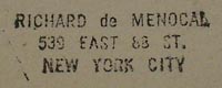Most stamped verso: Richard de Menocal/ 539 East 88th Street/ New York City