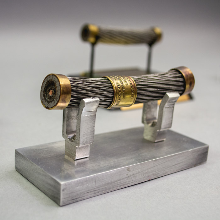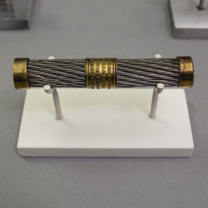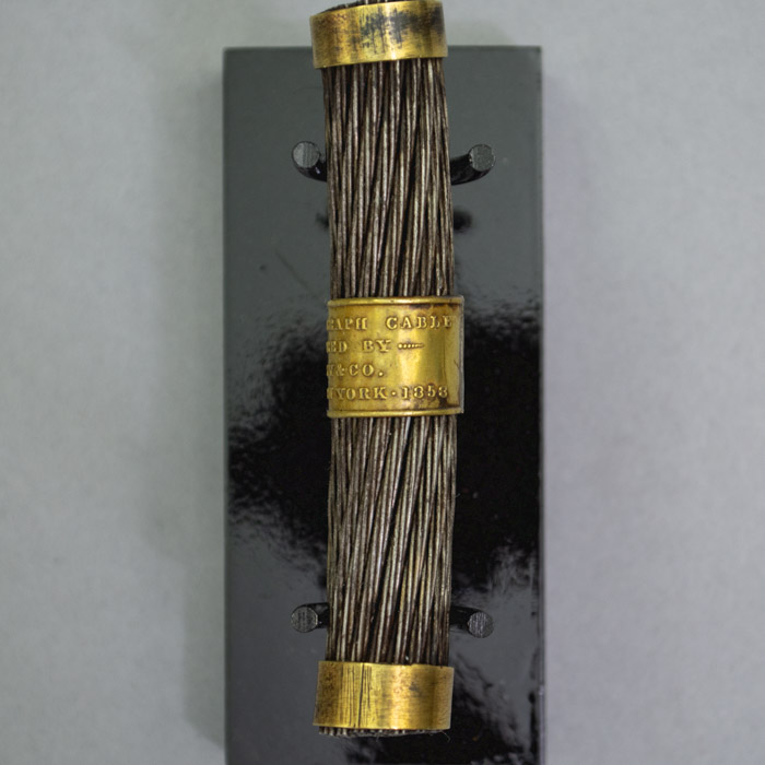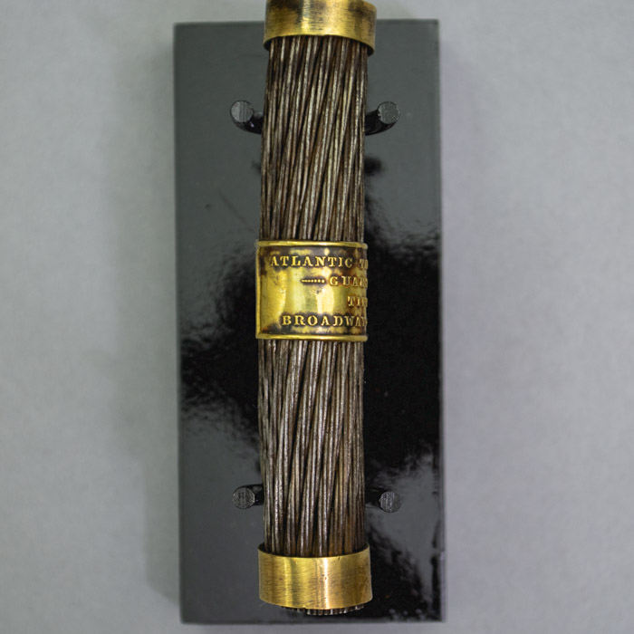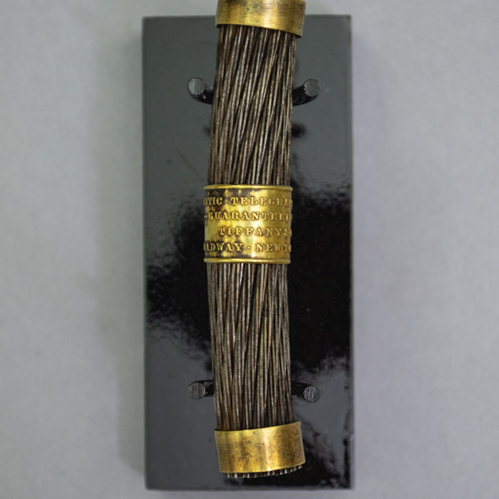 Field sold a quantity of unused 1858 Atlantic Cable to Tiffany & Co., to be cut into small lengths and sold as souvenirs. A facsimile document signed by Field originally was included with the cable, attesting to its authenticity: “New York, Aug. 21st 1858. This is to certify that I have sold the balance of the Atlantic Telegraph Cable now on board of the U.S.S.F. “Niagara” to Messrs. Tiffany & Co. Jewelers No. 550 Broadway of this city, and that the piece which accompanies this, is a genuine section thereof. [/s/ Cyrus W. Field].” One of these 1858 certification letters is shown above. A photocopy is available with purchase of a cable section at no extra cost.