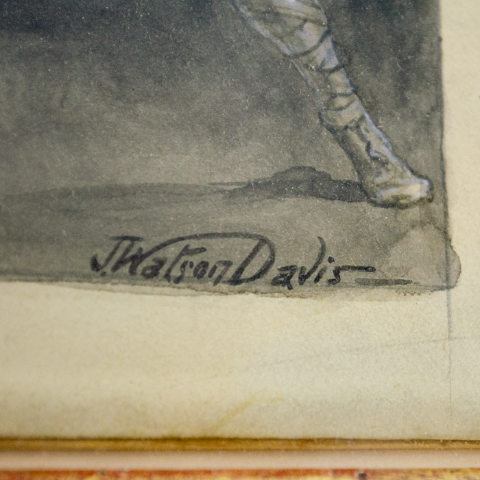 John Watson Davis was born in New York but received his artistic training in Paris, where his family had moved when he was 10. Returning to New York in his twenties, he embarked upon a prolific career as a book illustrator for the next 60 years, from the late nineteenth to the mid-twentieth centuries. He signed his work “J. Watson Davis” to avoid being confused with other artists named John Davis. Davis created artwork for Zane Grey novels, Sherlock Holmes tales and Bluebeard. He is also known for his religious illustrations depicting missionary and humanitarian activities of Catholic nuns and priests. These were commissioned by various Catholic organizations, especially the Society for the Propagation of the Faith, which published them on a series of calendars in the late 1940s. The Georgetown University Art Collection featured their collection of Davis’ religious drawings in an exhibition that opened in late 2002.