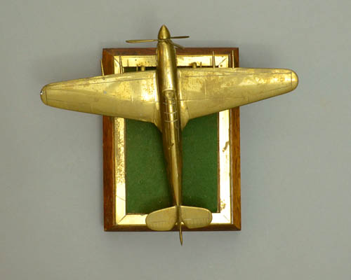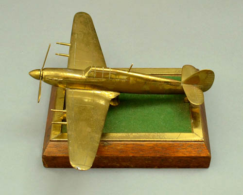 Brass aircraft models of World War II planes — such as the offered example — were often made during the war by factory workers in Great Britain during their spare time using left-over brass at the factory. Generally, they are 1/72nd scale, varying in quality, with some mounted on bases. Models of British fighters that they made included the Supermarine Spitfire, Hawker Hurricane, and Boulton Paul Defiant — the latter being a single-seater plane with a power-operated turret behind the pilot. British factory workers also made brass models of American planes including the Boeing B-17 , Consolidated B-24 Liberator, Lockheed P-38 Lightning, and the North American P-51 Mustang. World War II models of Axis power planes were apparently not made by the British workers.