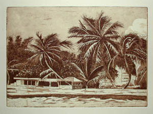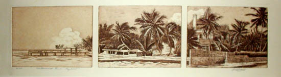 This work is by William Cantwell (b. 1947), an artist who spent the winters in Key West in the late 1980s, and continues to specialize in tropical themes.