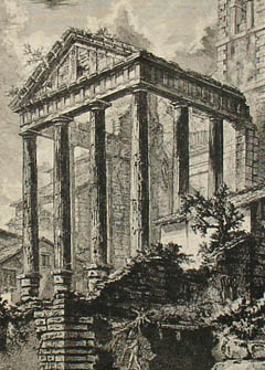 The 135 plates of the Vedute di Roma, produced individually by Piranesi from the late 1740s until his death some thirty years later, represent almost every phase in his stylistic evolution and reflect his changing intellectual concerns. Through these particular works, which were spread all over the Continent by means of the Grand Tour, Piranesi was not only to revolutionize the convention form of the veduta but was to transform the European vision of classical antiquity. (Wilton-Ely, 176)