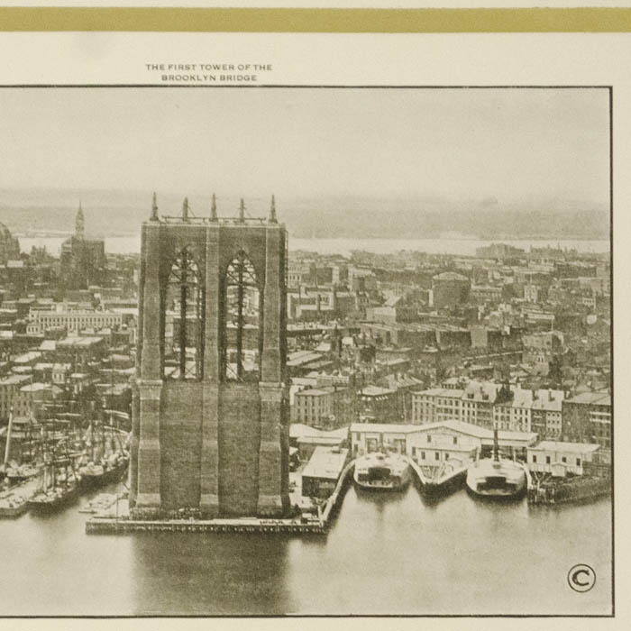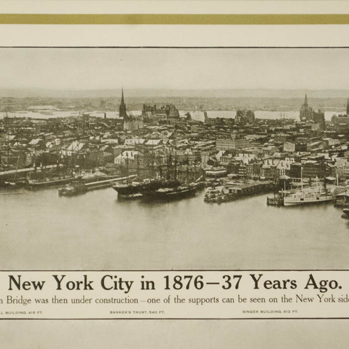 New York in 1876 — 37 Years Ago. The Brooklyn Bridge was then under construction — one of the supports can be seen on the New York side of the River.