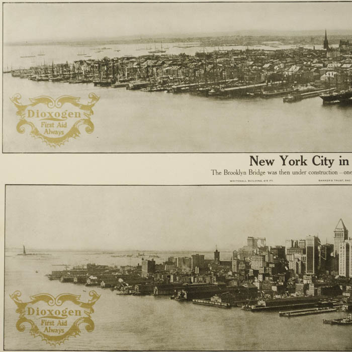 New York in 1913. The growth of Dioxogen has been as wonderful as the development of this great city; it is now sold in every Drug Store in New York as well as in every other city and town in the United States. Dioxogen is used in over a million homes. It ought to be in yours.