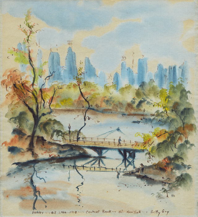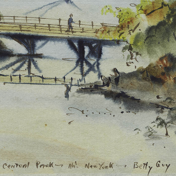 Betty Guy was an American artist from San Francisco, California, best known for her works on paper of cityscape and landscape subjects. She worked in watercolors and pen and ink, and also made monotypes and limited edition prints. She studied art at San Francisco State University and in the graduate program of the University of California at Berkeley. She also studied at the Art Students League in New York and in Paris at the Alliance Française and at the L’Académie de la Grande Chaumière. She exhibited regularly in her home city throughout her long career and had her first museum exhibition there in 1961 at the Palace of the Legion of Honor. Guy also showed her work in galleries in Tokyo, Vienna, and elsewhere, and at the American Embassy in Bonn, Germany. She received numerous commissions from the Port of San Francisco and corporate clients.