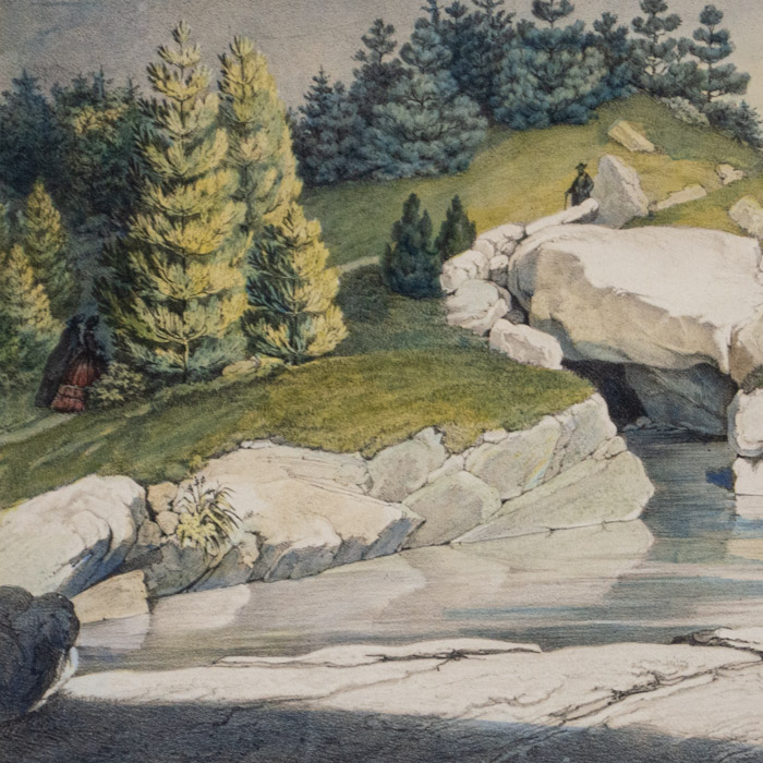 Central Park opened in 1857. In 1858, the job of improving and expanding it to transform the area into a pastoral oasis for the “toiling masses,” was awarded to Calvert Vaux, a young British architect, and Frederick Law Olmstead, an American farmer and magazine editor. Reconstruction began that same year and was completed in 1873. Fasel’s views, published in 1862, show an early — perhaps idealized — image of the Park. They also reveal how much of the Park’s scenery was manmade to mimic the beauty of nature.