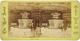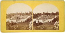 Central Park came into being beginning with an act passed on July 21, 1853 by the New York City Common Council authorizing the construction of a public park bounded by 59th and 106th Streets, Fifth and Eighth Avenues. The park was conceived to provide recreational open space for citizens of the growing city, which then had few open squares. The site that was destined to become Central Park was then “a bleak, rubbish-strewn area littered with squatters’ shacks.” (Deák) Central Park opened in 1857, and in 1858, the job of improving and expanding it, transforming the area into a pastoral oasis for the “toiling masses,” was awarded to Calvert Vaux, a young British architect, and Frederick Law Olmstead, an American farmer and magazine editor. Reconstruction began that same year and was completed in 1873.