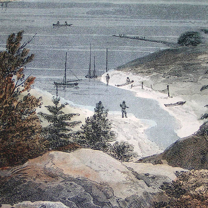 John Hill (1770-1849) began his career as an aquatint engraver of landscapes in his native London, publishing a series of views after the paintings of J.M.W. Turner and others. He immigrated to the U.S. in 1816 and continued engraving for the next 20 years, first in Philadelphia and later in New York. Hill is well known for his pair of New York City prints New York From Weehawk and the companion view New York from Heights near Brooklyn after views by William Guy Wall (1792-1864). He also did the engravings after views by Wall for the Hudson River Portfolio (1821-1825), a set of 20 hand-colored aquatint views along over 200 miles of the Hudson River, from New York City to the Adirondacks. Published by Henry J. Megarey in New York with text by John Agg, the Hudson River prints are considered amongst the finest produced in 19th-century America. Hill is also renowned for his 20 hand colored aquatint views after paintings by Joshua Shaw published between 1820 and 1821 in what is familiarly called The Landscape Album. His son and grandson, John William Hill and John Henry Hill, also became noted landscape painters.