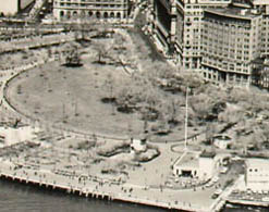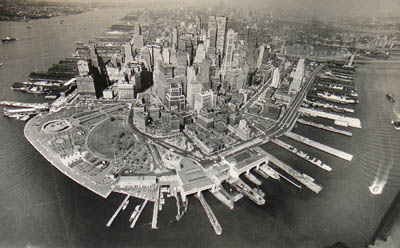 Rotkin was a respected and prolific documentary photographer, widely published during the golden age of pictorial magazines, as well as in corporate publications. The works that brought Rotkin the greatest renown, however, were his pioneering aerial photography collections, Europe: An Aerial Close-Up (1958) and The U.S.A.: An Aerial Close-Up (1962, 1968). These books captured the popular imagination at the time, thrilling the public with novel perspectives of familiar places and the beauty of both the natural and the man-made environment. Rotkin can be seen as one of the heirs to the 19th- and early 20th-century tradition of bird’s-eye views of American towns drawn by itinerant artists in the pre-aviation era and often made into prints. Of course, the earlier artists’ work, though convincingly drawn and detailed, were typically imaginative projections based on their studies of the town from the ground. These became obsolete with the advent of the airplane and helicopter, which offered actual bird’s-eye views, along with cameras that could take pictures at split-second shutter speeds. Rotkin was one of the early pioneers of the new medium and technique. His work remains significant as an early example of aerial photography with an artistic purpose, and also as historical documents of places that in many cases have significantly changed in the ensuing decades.