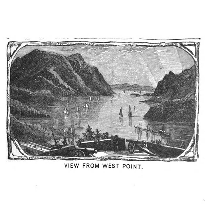 The natural beauty of West Point also made it a popular tourist destination in the early and mid 19th century, and visitors arrived by train or on boat cruises up the Hudson. As the 19th century writers John Warner Barber and Henry Howe noted: “Standing on the parade ground and looking northward, the pass of the river through the highlands presents a picturesque scene of unsurpassed magnificence and beauty” (Deák, 326). Artists and publishers including Jacques Milbert, John Hill, William Bennett, and Currier and Ives produced prints of West Point, some as part of a series of Hudson River views.