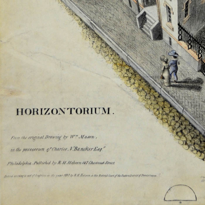Full publication information: Horizontorium. From the original Drawing by Wm. Mason, in the possession of Charles N. Bancker Esq’r. Philadelphia. Published by R.H. Hobson 147 Chestnut Street. Entered according to act of Congress in the year 1832 by R.H. Hobson in the District Court of the Eastern District of Pennsylvania. Drawn on Stone by J.J. Barker.