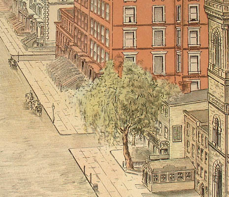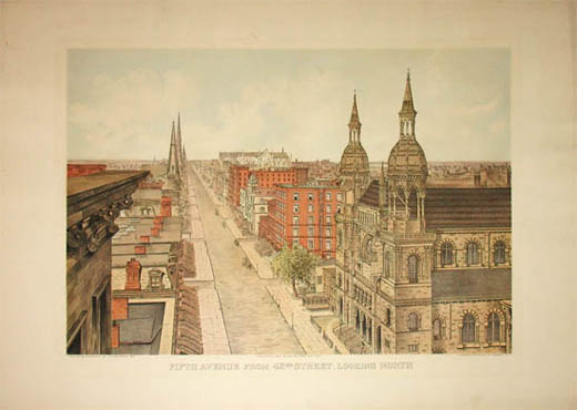 George Glazer Gallery’s copies of these views were included in The Greatest Grid, an exhibition at the Museum of the City of New York (December 2011 through July 15, 2012) of maps documenting the development of the grid system of mapping Manhattan. They are also illustrated and described in the accompanying book to the exhibition. According to the exhibition book, the prints show the “types of edifices that lined the thoroughfare in 1879.” It further points at that by the end of the 19th century, Fifth Avenue had become “synonymous with luxury living for Americans throughout the country. Members of the city’s elite slowly built their elegant homes and institutions up the avenue, settling the area between 23rd and 34th Streets by 1868 and moving up to 59th through the next decade” (Ballon et al.). Read more about The Greatest Grid exhibition and book, or order the book here.