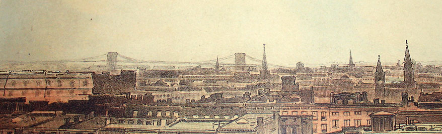 John Bachmann, a German immigrant to the United States, was an artist and lithographer, credited with coining the term bird’s-eye view, and was a prolific and prominent creator of such views. His first such panoramas were of Civil War battle areas in 1861. Bachmann produced a variety of bird’s-eye views of New York City from different vantage points, some of which are on our web site.