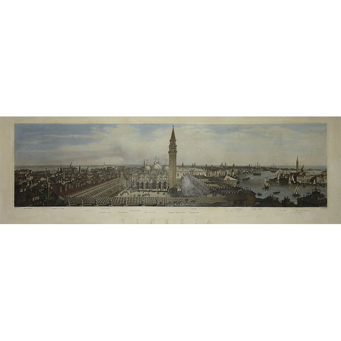The Vallardi firm was founded in Milan in 1750 by Francesco Cesare Vallardi as a print publishing and art dealing business, and continued by his sons Pietro (1770-1819) and Giuseppe (1784-1861). After Pietro’s death in 1819, Giuseppe continued running it alone. Vallardi published some 22 editions of Itinerario d’Italia between 1819 and 1835, a forerunner of the modern travelers’ guidebook. In the mid 19th century, the company also published city views, including panoramas of Italian cities such as Genoa, Venice and Florence. Other 19th century publications included artistic, geographic, scientific and religious works, and the firm developed its scholastic publications to become one of Italy’s leading producers of educational materials for children. They also produced globes and planetary models, and other school demonstration devices, from the late 19th to mid 20th century. By 1920 the company had been renamed Antonio Vallardi. During the latter half of the 20th century, the firm was acquired by Gruppo Editoriale Mauri Spagnol and continues to focus on educational and geographic reference works today: foreign language dictionaries, tourist guides, textbooks and how-to books.