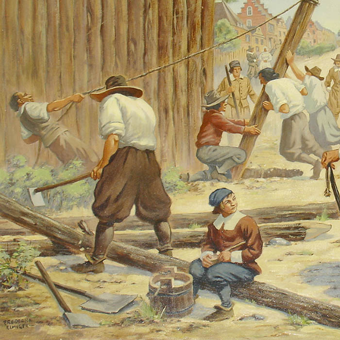 Frederick Elmiger was an American illustrator. He frequently produced series on historical themes for Donald Art Company in Port Chester, New York, publishers of posters, lithographs, and artists’ prints. These included scenes from American history, Revolutionary war uniforms and vintage automobiles. At the time of his death he was living in Larchmont, New York.